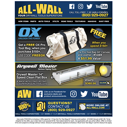 All‐Wall Equipment Promotional ‐ OX Tool & Drywall Master
