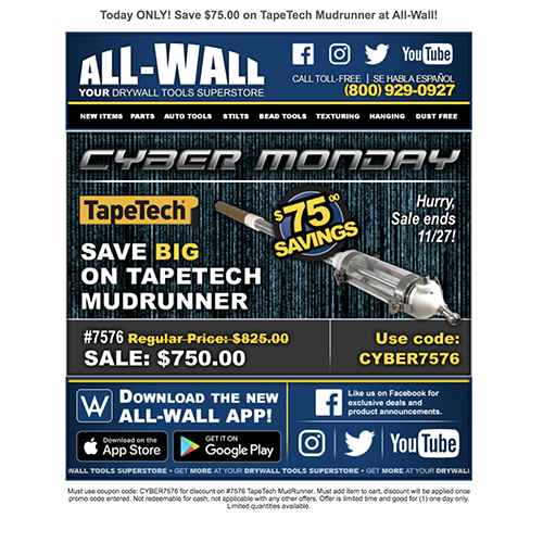 All‐Wall Equipment Promotional ‐ Cyber Monday